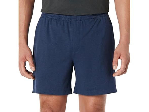 - (1) Amazon Essentials Men's Athletic Relaxed Fit 7" Lounge Workout Gym Shorts, Soft Performance, Space Dye Navy, Medium