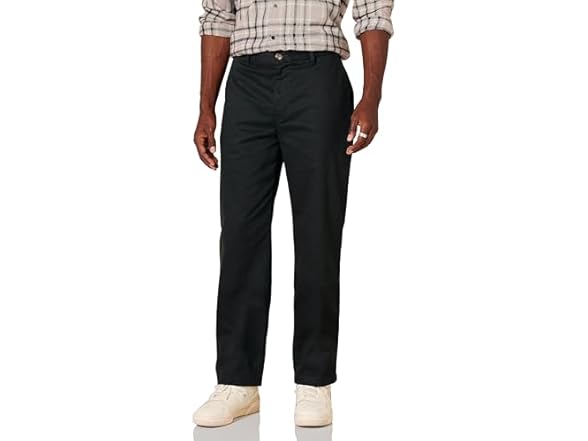 - An Amazon brand - A flat-front wrinkle-resistant dressy chino pant that offers classic style all week long