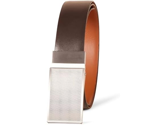 - STYLE: This belt has a reversible plaque style buckle so that it can be worn two ways. Leather is a natural product with unique characteristics that can vary from belt to belt.