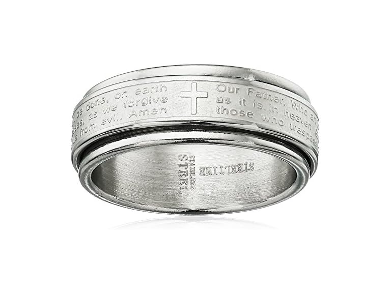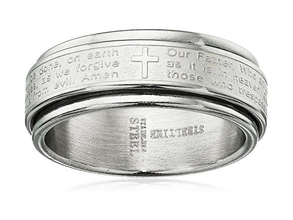 - Religious Fashion Stainless Steel Our Father Prayer Ring. Available in Steel, Yellow 18K Gold plated, and Rose 18K Gold plated finish.