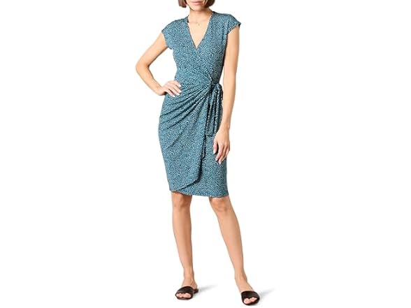 - Amazon Essentials Women's Classic Cap Sleeve Wrap Dress with V Neck