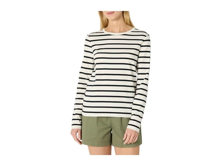 - DETAILS: Features a ribbed crew neckline and long sleeves