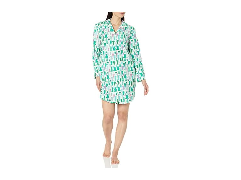 - (1) Amazon Essentials Women's Woven Flannel Notch Collar Nightgown (Available in Plus Size), Ecru Festive Tree, Medium