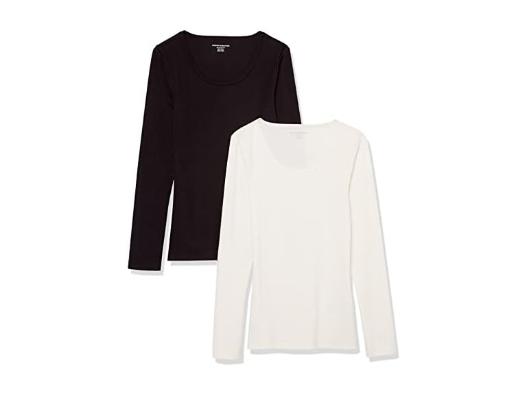 - (1) Amazon Essentials Sweater for Women, Long Sleeve Slim-Fit Rib Scoop Neck (Available in Plus Size), Pack of 2, Black/Eggshell White, Medium