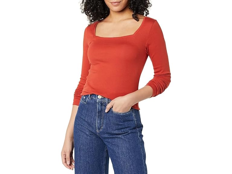 Amazon Essentials Women's Slim-Fit Square Neck T-Shirt