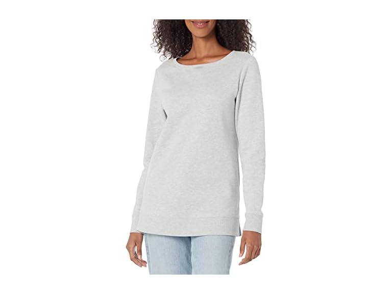 - (1) Amazon Essentials Women's Open-Neck Loose-Fit Fleece Tunic Sweatshirt, Light Grey Heather, Large