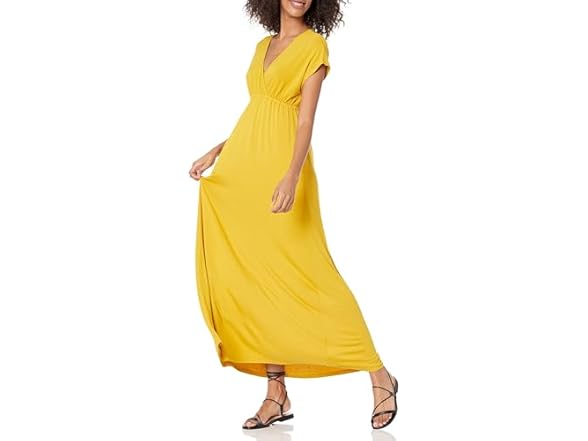 - Amazon Essentials Women's V Neck Short Sleeve Waisted Maxi Dress