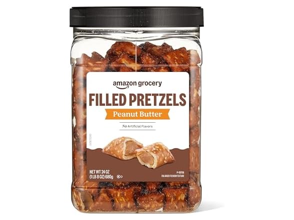 - (1) Amazon Grocery Amazon PB Filled Pretzels, 24oz