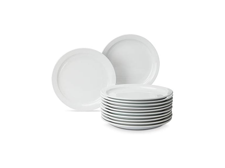 - AmazonCommercial 12-Piece Porcelain, 9 Inch Narrow Rim Dinner Plate Set, White