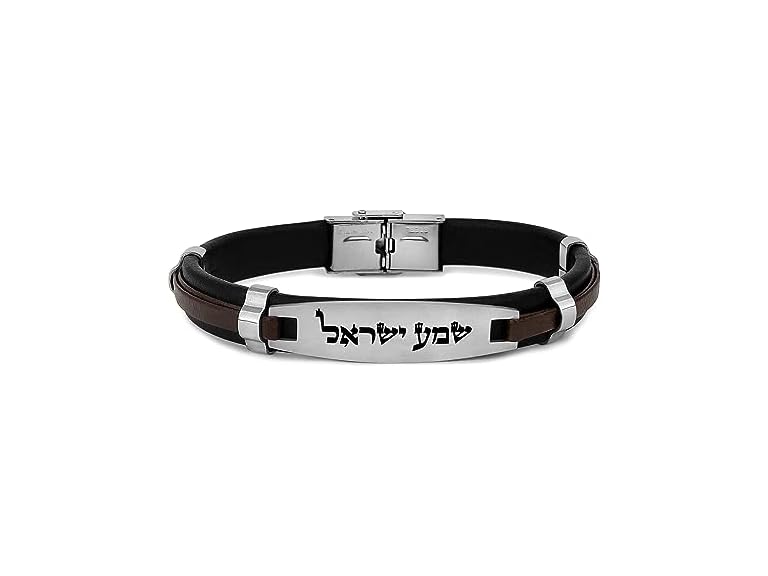 - (1) Amen Judaica Leather Bracelet Bangle with Hebrew Jewish Blessing Motif (Shema Israel)