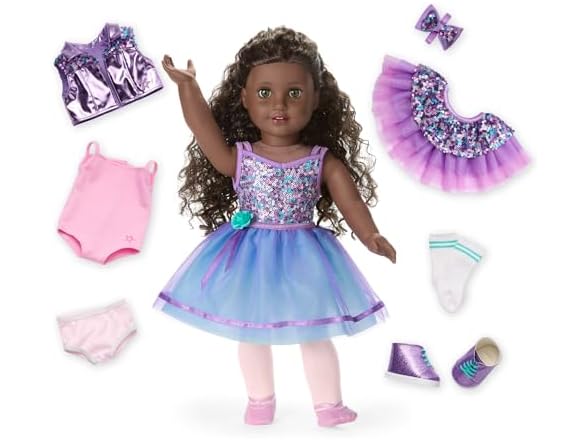 - Additional accessories include a sequin bow, ballet slippers, dance socks and glitter sneakers