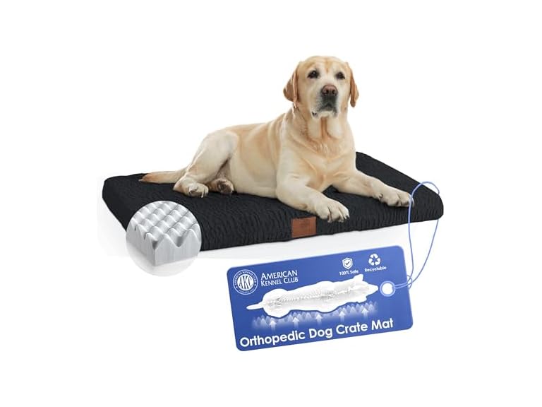 - AMERICAN KENNEL CLUB Orthopedic Memory Foam Dog Crate Bed, Egg Crate Foam, Washable Cover, Non-Skid Bottom, Relieves Joint Pain, Breathable, Durable, 42x27 Black