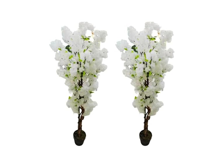- (1) AMERIQUE 5 Feet Gorgeous & Lifelike White Cherry Blossom Artificial Tree, with Nursery Pot, Real Touch Tech.
