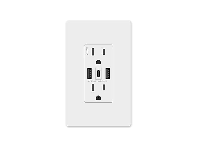 - (1) Amerisense GaN 3-Port USB Wall Outlet, 15 Amp Tamper-Resistant Receptacle with 2 Type A Port&1 USB Type C, USB Charger for iPhone/iPad/Samsung/LG/HTC, UL Listed