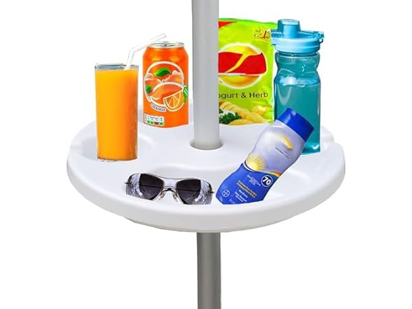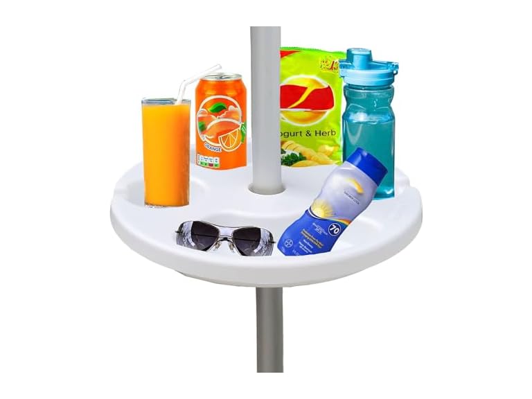 - AMMSUN 13" Beach Umbrella Table Tray for Beach, Patio, Garden, Swimming Pool with Cup Holders, Snack Compartments White