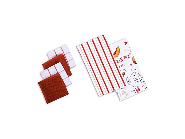 - (1) AMOUR INFINI Cotton Kitchen Towels and Dishcloths 6 Piece - 4 Terry Dishcloths (12 x 12) and 2 Cotton Kitchen Towels (28x 18) for Gifting and Decor (Pumkin)