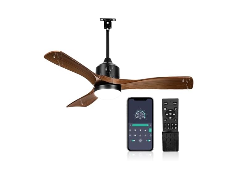 AMZATYI 42 Inch Smart Outdoor Ceiling Fan, Brown