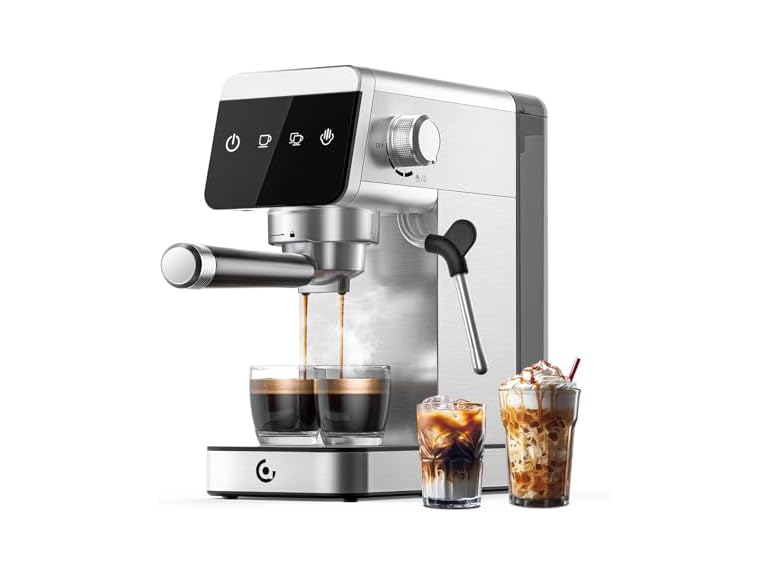- Touch Control & Durable Design: Barista coffee machine features a LED touch screen for free selection of single and double cups, and diy extraction time settings are achieved by long-pressing the single/double cup icon for 5s. Compact Coffee Espresso Machine has a stainless steel appearance, which is stylish and durable. It’s ideal for a kitchen of any size. 41oz removable water tank is easy to refill and clean, ensuring that your coffee machine stays in top condition for years to come.