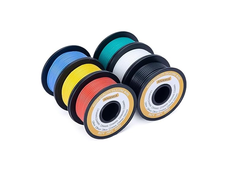 - ANAMIA 22 AWG Silicone Stranded Copper Wire 6 Colors 360ft (Black, Red, Blue, Yellow, White, Green Each 60ft/Spool) Primary Flexible 22 AWG High Temperature Hookup Wire 392‚Ñâ 600V