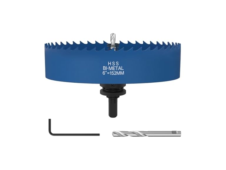 - [Package Includes]: 6'' bi-metal hole saw, 1 x hex shank mandrel, 2 x center drill bits, 1 x hex wrench