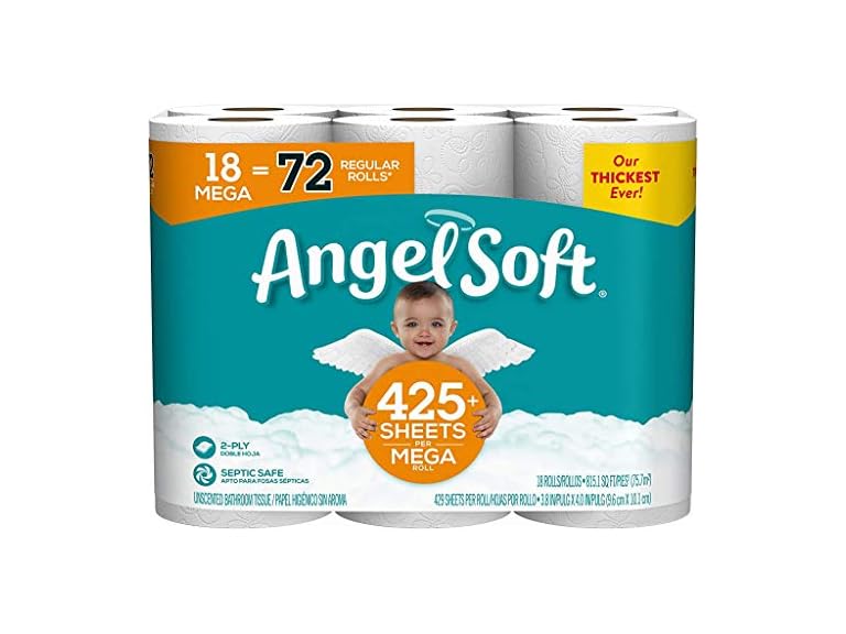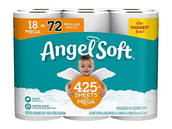 Angel Soft Toilet Paper is designed with softness and strength at a price that won't break the bank. Roll for roll, Angel Soft gives you the quality you expect at a value you'll love. Angel Soft Double roll toilet paper offers up to 60% more bathroom tissue sheets than the leading 2-ply toilet paper brand, making it the most friendly choice for your budget. 1 Angel Soft Double roll = 2 Angel Soft Regular rolls. Sustainable Forestry Initiative (SFI) certified Angel Soft Double Rolls are made with sustainably-sourced trees. The full line of Angel Soft Toilet Paper is septic-safe for well-maintained sewer and septic systems. Angel Soft toilet Paper packaging is recyclable. The plastic wrapper has a resin identification number of 4. Please check with your local recycling facility to determine if these materials are recycled in your area. Get the softness and strength you love with this bulk pack of Angel Soft Classic white double roll toilet paper. Since each roll comes with 260+ 2-ply sheets that fit standard bathroom toilet paper holders.