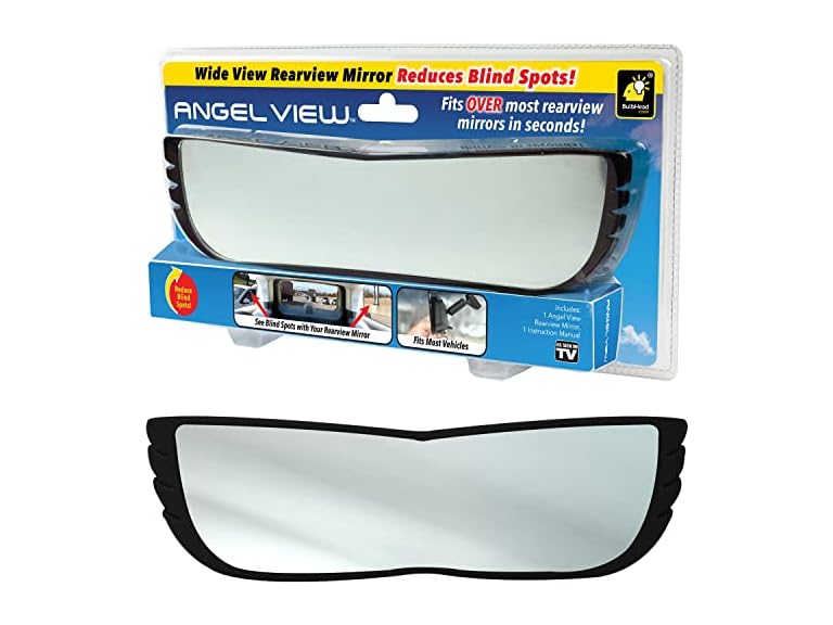 - (1) New Improved Angel View Wide-Angle Rearview Mirror AS-SEEN-ON-TV Reduce Blind Spots, Installs in Seconds, Fits Most Cars, SUVs & Trucks