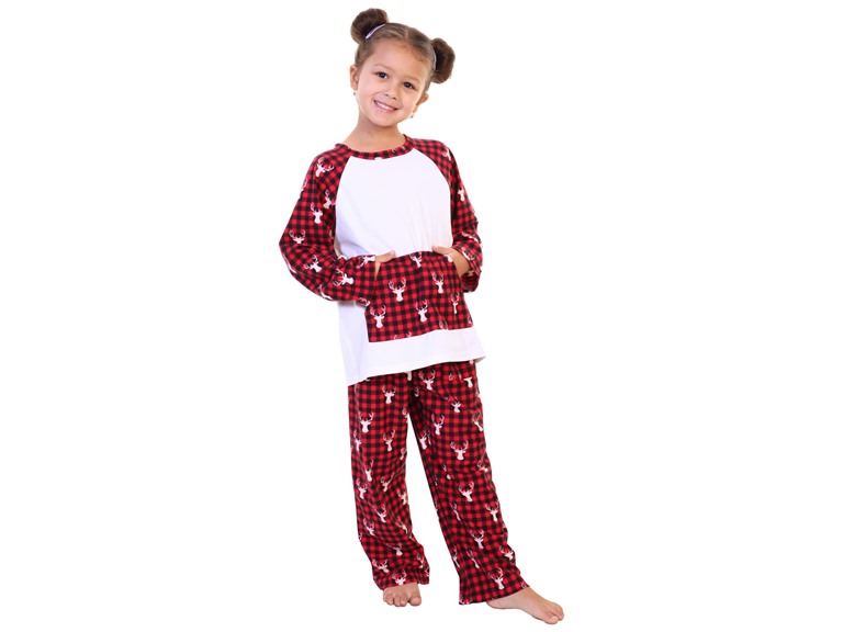 - (1) Angelina Kids' Flannel Kangaroo Pocket Raglan Shirt with Pajama Pants Set