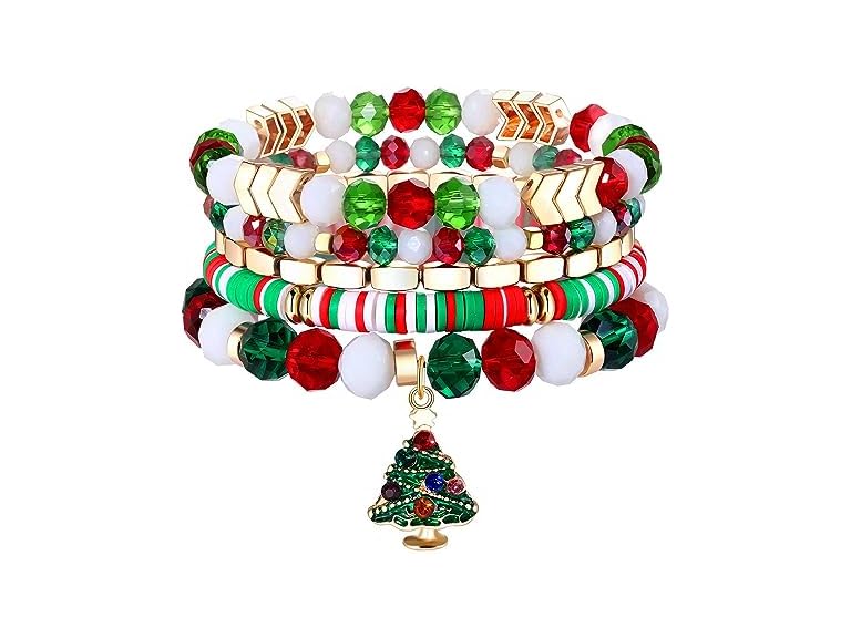 - (1) ANGLESJELL Multicolored Boho Bangle Bead Bracelet Set - 5 Strand Bracelets - Summer Beach Surfer Bracelet Gifts