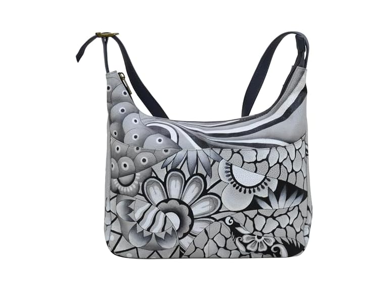 - PATCHWORK PEWTER ARTWORK - Each bag is hand-painted to create a piece of art inspired by nature and vintage themes. A black and white flower design in a patchwork style make this artwork elegant yet artsy