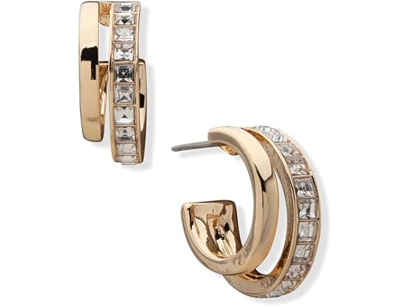 - ANNE KLEIN Gold Post-Back Closure Double Row Hoop With Crystal Accent
