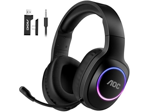 - 【Long-Lasting Battery with Fast Charge】The AOC over-ear wireless gaming headset can power through up to 45 hours of gameplay on a single charge. A full recharge takes only 2 hours via USB-C, and you can continue gaming while charging so you’ll never be sidelined when the battery runs low.