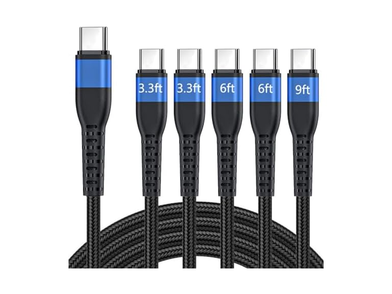 - (1) Aofong USB C to USB C Cable PD 60W 3.3/3.3/6/6/9 FT Nylon Braided Type C Fast Charging Cable for iPhone 17/17 Pro Max, MacBook, iPad, Galaxy S25/S24/23 (5Pack, Blue)