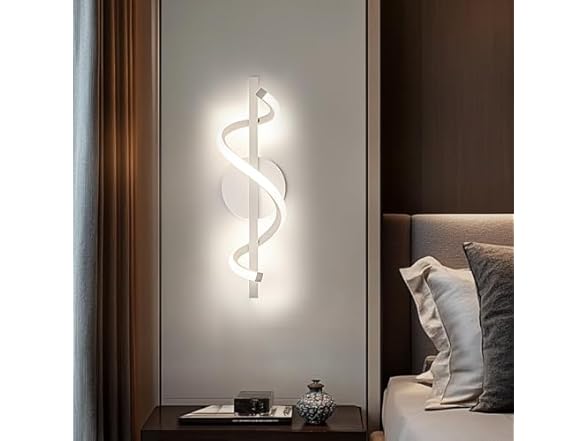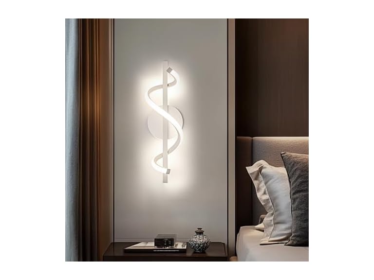 - (1) AOMEI White S-Shaped Wall Sconce - Full Spectrum Eye-Care Lighting, 12W 3-Step Dimming (3000K/4000K/6000K) Wall Lamps, Memory Function Wall Light Fixture, for Bedroom, Hallway & Accent Walls