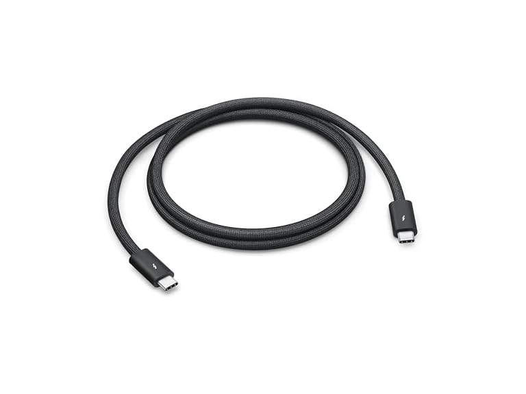 Featuring a black braided design that coils without tangling, this 1-meter cable supports Thunderbolt 5 data transfer up to 120Gb/s; Thunderbolt 3, Thunderbolt 4, and USB 4 data transfer up to 40Gb/s; USB 3 data transfer up to 10Gb/s; DisplayPort 2.1 video output; and charging up to 240W. Use this cable to connect a Mac with Thunderbolt 3, 4, or 5 (USB-C) ports to Thunderbolt (USB-C) and USB displays and devices such as Studio Display, Pro Display XDR, docks, and external drives. You can also use this cable to connect iPhone and iPad models with USB-C to your Mac.