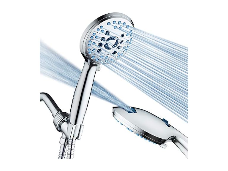 - MORE WATER PRESSURE, LESS CLEANING - Revolutionary AquaCare hand shower features advanced 8-setting 5-zone Powerhead with Self-clean Anti-clog Nozzles that prevent accumulation of grime inside. So while other showerheads clog and loose water pressure over time, AquaCare nozzles remain clean and clog-free for years of flawless performance. Designed in USA by top American shower experts. Patent pending.