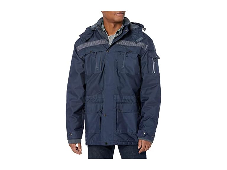 - Hand warmer style pockets; Added interior security pocket, chest & sleeve pockets