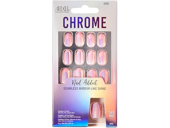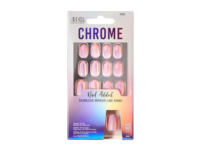 - Ardell Nail Addict Chrome Press On Nails - Orb, Short Round Shape, All-In-One, Nail Kit, 1-Pack