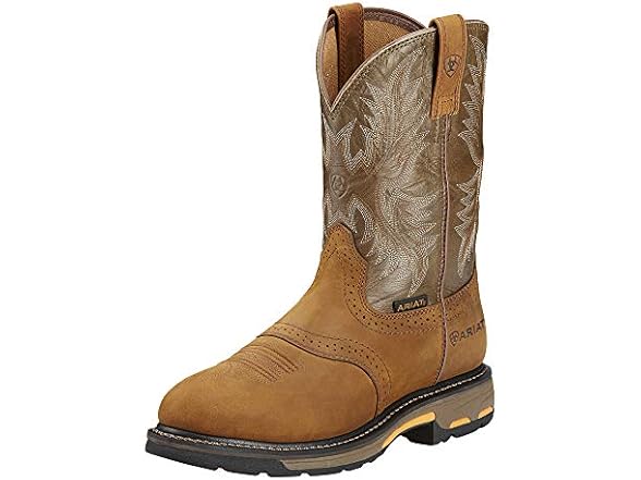 - WORKS AS HARD AS YOU DO: The Workhog Pull-on Work Boot by Ariat are made for the long haul: strong, sturdy and styled with western detailing ; The supportive cushioning and stability technology make them ideal for construction, warehouse, factory or farm work