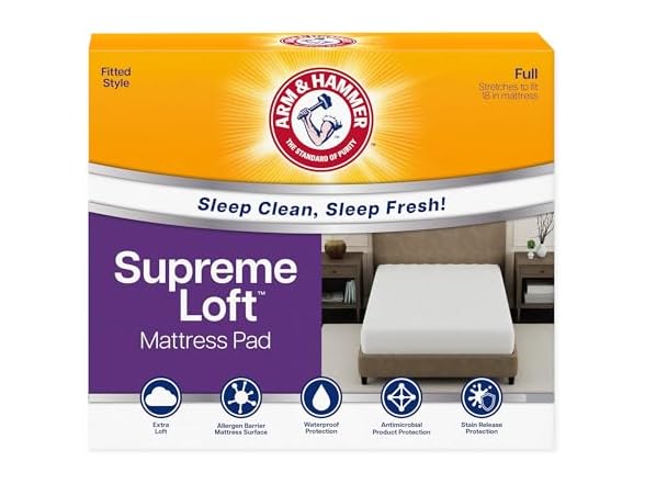 - (1) Arm & Hammer Supreme Loft Mattress Pad, Waterproof, Full or King