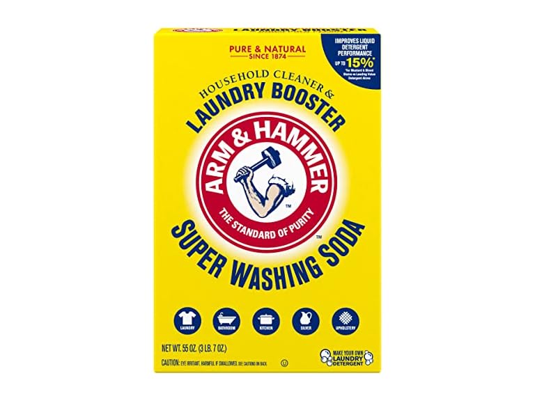 - (1) ARM & HAMMER Super Washing Soda Household Cleaner and Laundry Booster, Versatile Natural Home Cleaner, Powder Laundry Additive and Cleaner, 55 oz Box