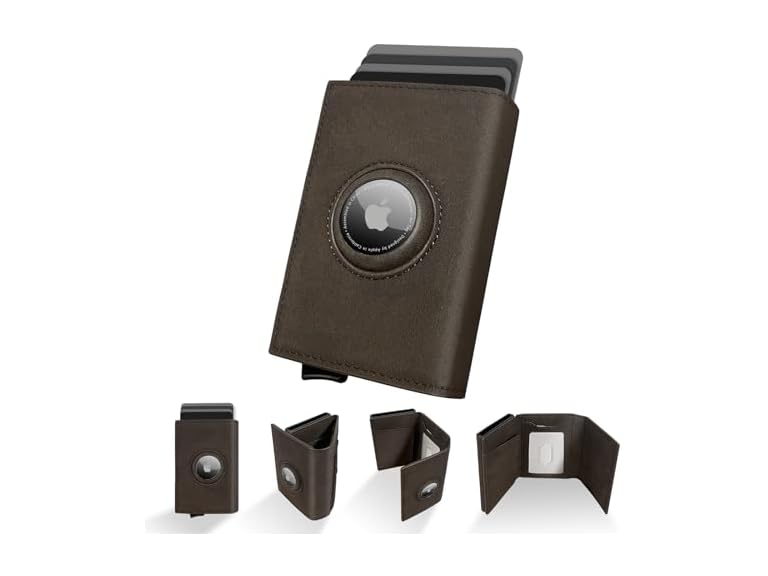 - (1) Artanchao AirTag Wallet Card Holder for Mens, Secure Holder for Apple Air Tag, Pop up Card Case, Premium Genuine Leather, RFID Blocking, Minimalist Smart Slim 9-14 Card Capacity, ID Window, Cash Slot