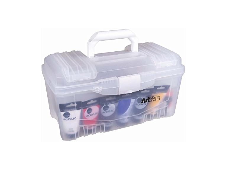 - ArtBin 6918AH Twin Top 17 inch Supply Box, Portable Art & Craft Supply Organizer with Handle, [1] Plastic Storage Case, Translucent
