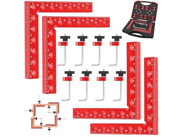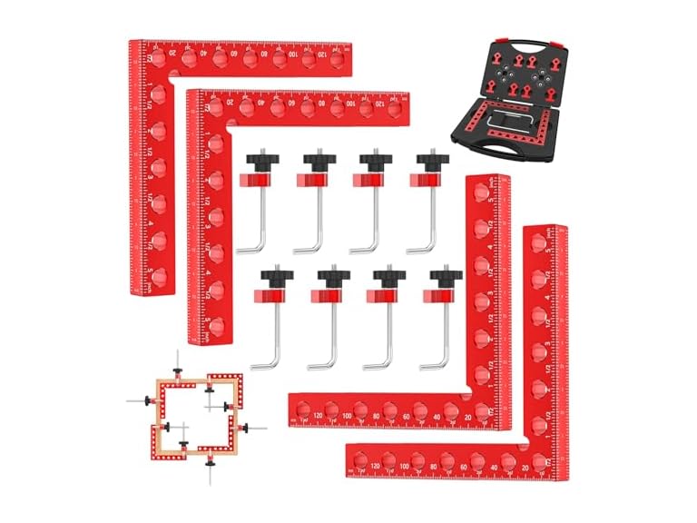 - (1) Corner Clamps for Woodworking, 90 Degree Corner Clamp, 4 Pack 5.5" x 5.5" Aluminum Alloy Woodworking Tools, with Storage Case, Clamping Positioning Squares for Cabinet, Frame, Drawer, Box