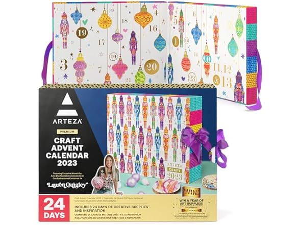 - A Bundle of Artistic Fun: Get inspired to start creating art with this Christmas advent calendar 2023. Experience a different art challenge or inspiration daily. Plus, the opportunity to get even more of your favorite Arteza art supplies.