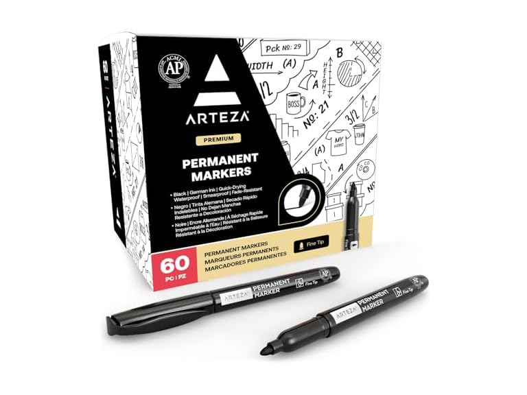 - (1) ARTEZA Permanent Markers Black, Bulk Set of 60, Fine Tip, Waterproof