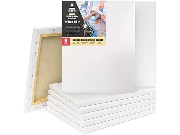 - (1) ARTEZA Premium Stretched Canvas, 11 x 14 Inches, Pack of 8, Blank White Canvas Boards for Acrylic, Oil and Gouache Painting
