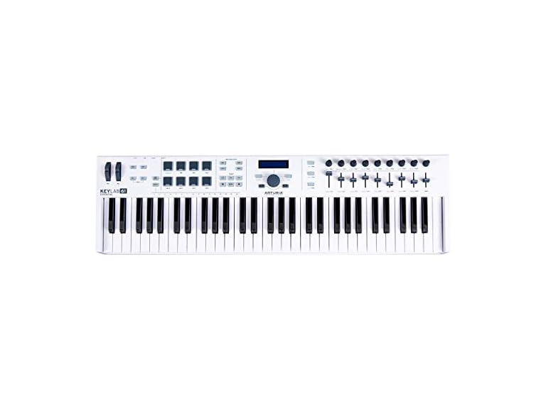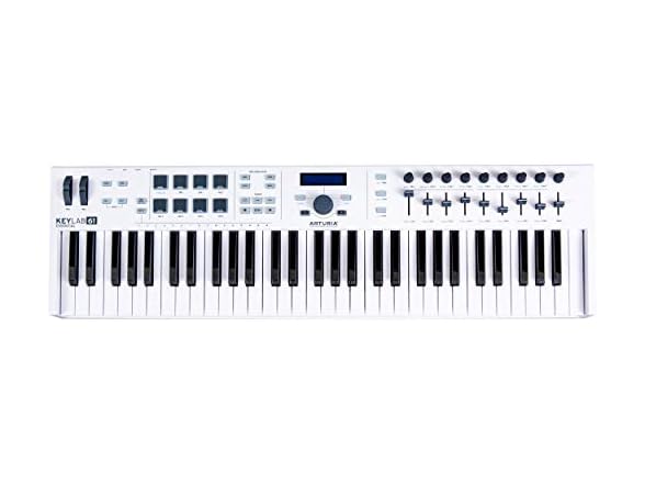 Arturia KeyLab 61 Essential 61-Note USB MIDI Controller Keyboard with Extensive Hands-on Controls There are few more frustrating things than when you want to sit down and make music but find yourself sinking all your time and effort into finding inspiring sounds or, worse yet, getting your system to work at all. Arturia's KeyLab Essential 61 is a virtual instrument workstation that's perfect for preventing exactly that sort of problem from derailing you. Between the controller's top-notch keybed, comprehensive hands-on controls, and total integration with the thousands of sounds in Arturia's Analog Lab 2 software, KeyLab Essential just plain works. It's an amazing experience that lets you take your ideas and turn them into fresh tracks in no time.Cut out the technical tedium with KeyLab Essential by combining a beautifully playable controller keyboard with Arturia's acclaimed Analog Lab 2.Powerful as it is, Analog Lab 2 is just part of what KeyLab Essential has to offer. This wonderfully laid out controller keyboard includes all the control you need to take charge of your DAW, including full transport controls. In fact, KeyLab Essential is a fully loaded universal MIDI controller, so it's completely compatible with any third-party instruments or other music-creation software. Most of the controls also do double duty, providing you with layers of control over Analog Lab 2, your DAW, and any other instruments you want to play with.Speaking of DAW applications and other virtual instruments, check out the awesome software package bundled with KeyLab Essential controller keyboards. Let's start by taking a closer look at Analog Lab 2. This greatest-hits sound collection features many of the top classics from Arturia's award-winning V Collection. It covers 17 timeless synths and over 5,000 sounds featuring Arturia's