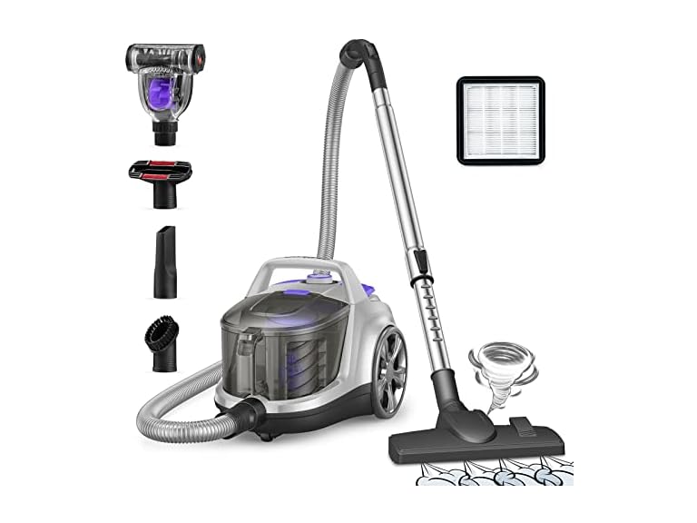 (1) Aspiron Canister Vacuum Cleaner, Lightweight Bagless Vacuum Cleaner, 3.7QT Large Dust Cup, Automatic Cord Rewind, 5 Tools, HEPA Filter, Variable Speed, Portable Vacuum for Hard Floors or Carpet