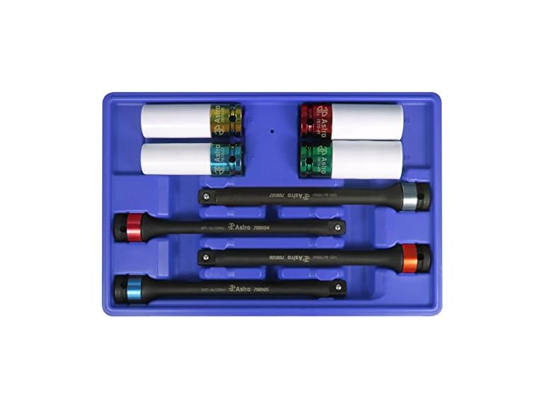 - 8pc set includes common torque limits and socket sizes for wheel mounting