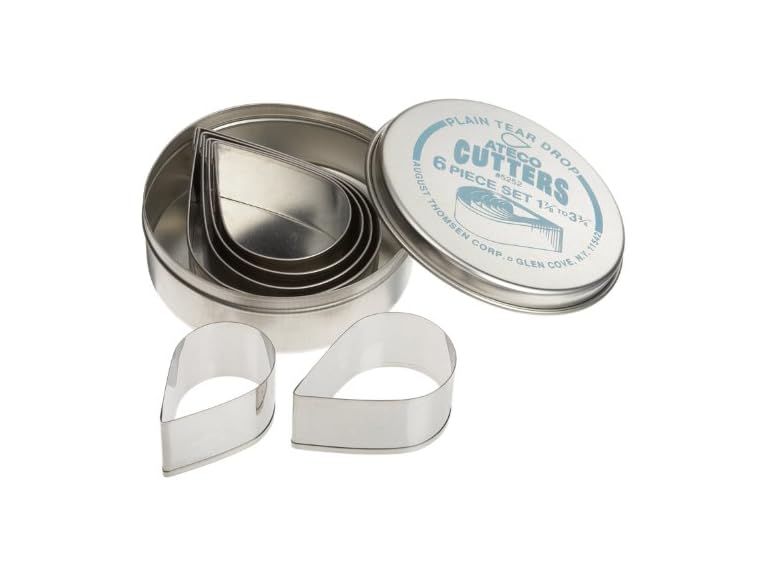 - (1) Ateco Plain Edge Tear Drop Cutters in Graduated Sizes, Stainless Steel, 6 Pc Set